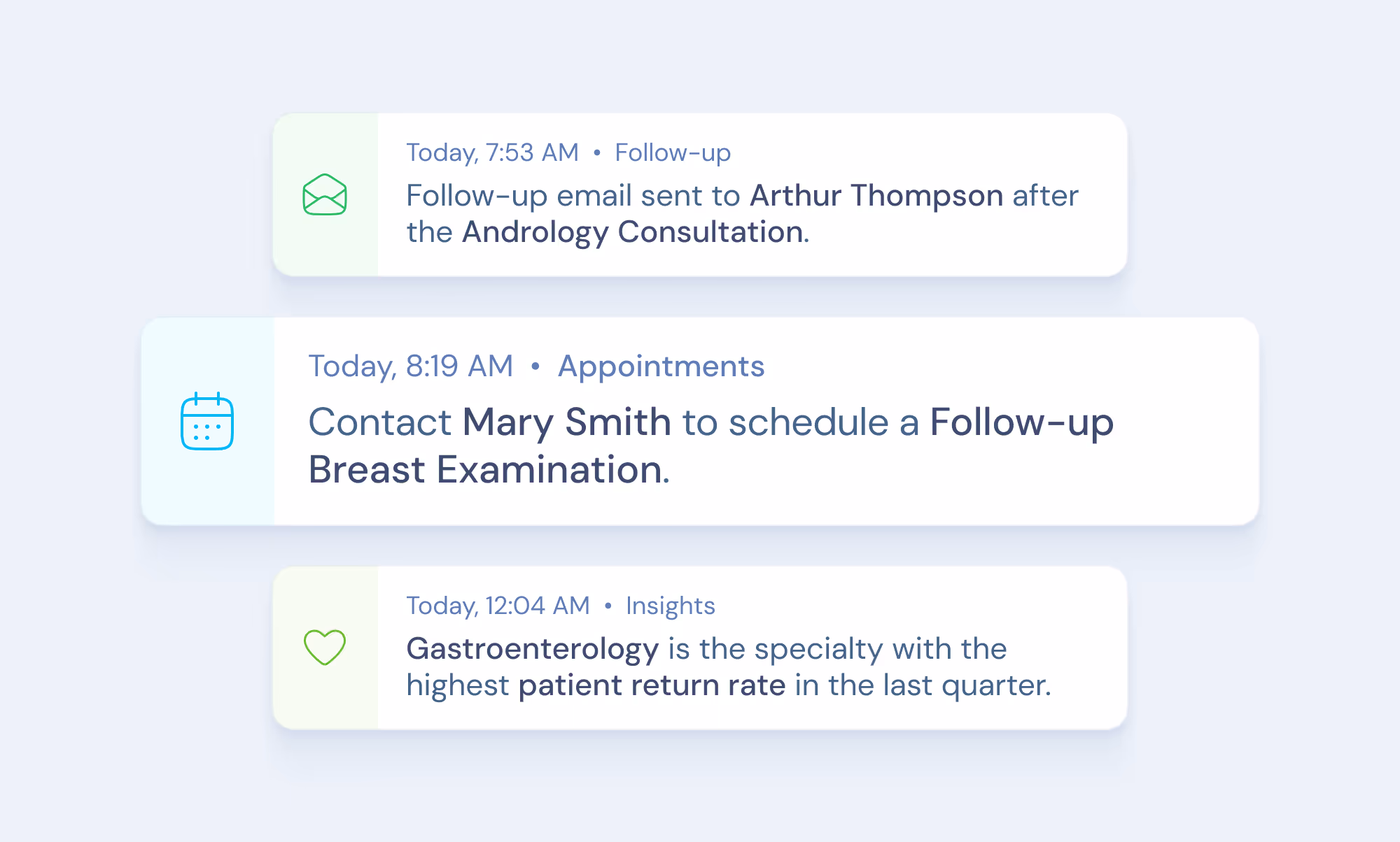 Improve therapeutic adherence with AI-generated, personalized follow-ups that keep patients informed and engaged.
